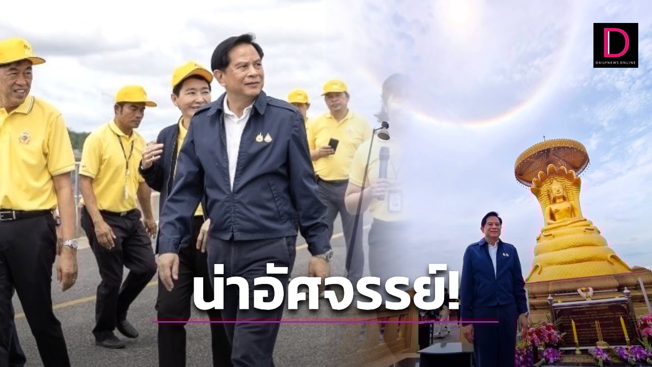 น่าอัศจรรย์! พระอาทิตย์ทรงกลด 2 ชั้น ขณะ ‘พีระพันธุ์ สาลีรัฐวิภาค’ สักการะหลวงพ่อเจ็ดกษัตริย์ และยังพบงูจงอางขนาดใหญ่ แผ่แม่เบี้ยอยู่กลางถนน ในขณะที่รถขบวนแล่นผ่าน หลังเดินทางเยี่ยมชมโรงไฟฟ้าพลังน้ำลำตะคองชลภาวัฒนา